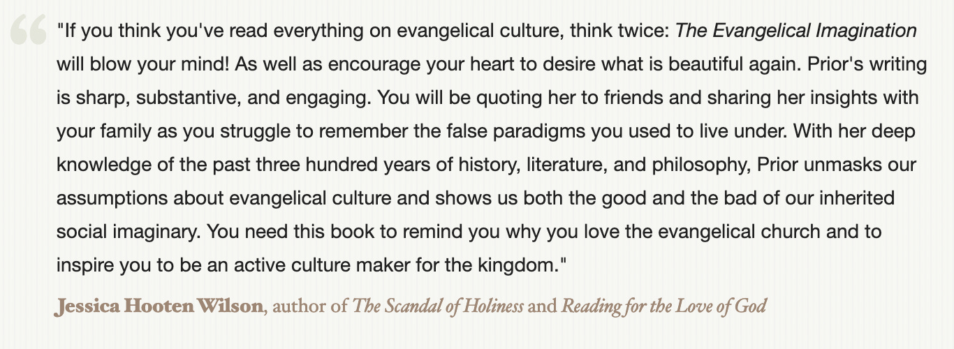 Because I endorsed Evangelical Imagination by Karen Swallow Prior, you already know how much I loved it.